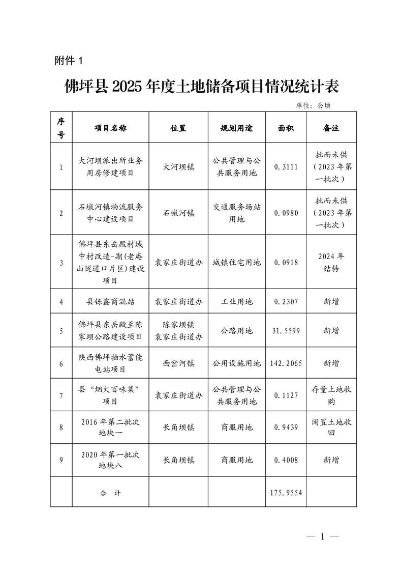 附件:1.《佛坪县2025年度土地储备项目情况统计表》
