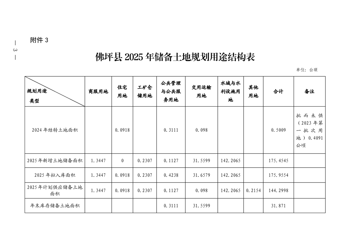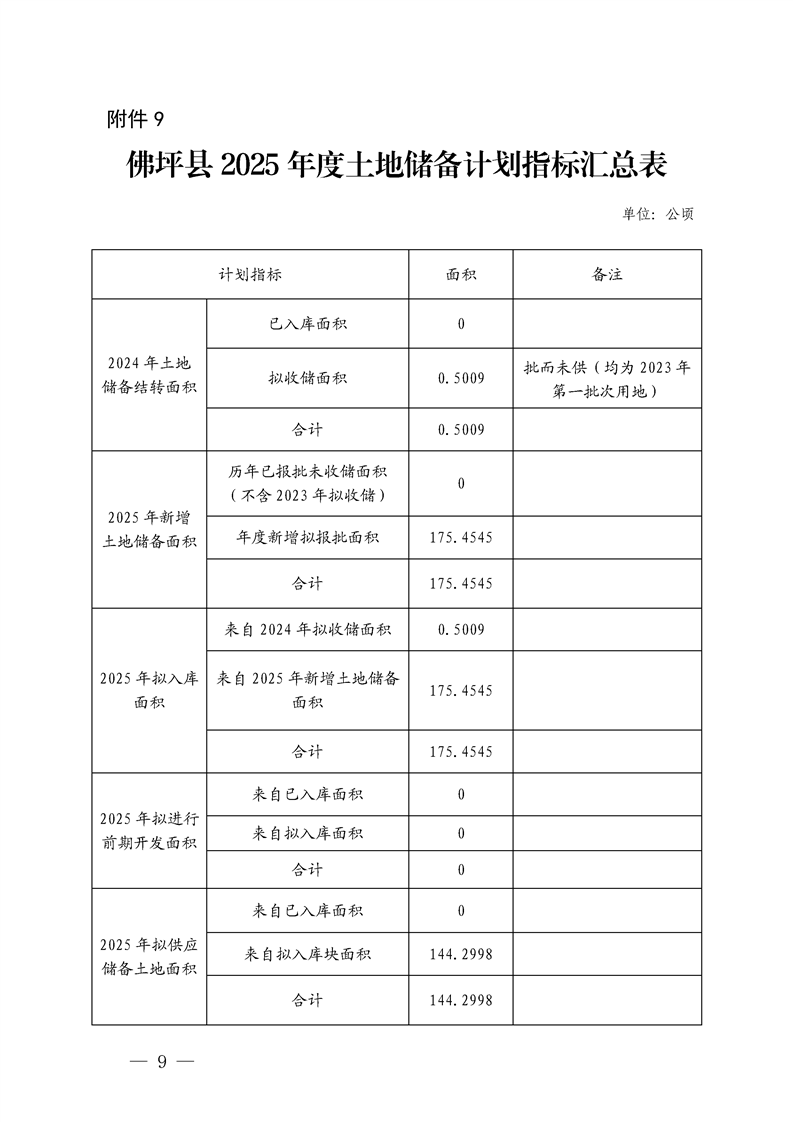 9.《佛坪县2025年度土地储备计划指标汇总表》