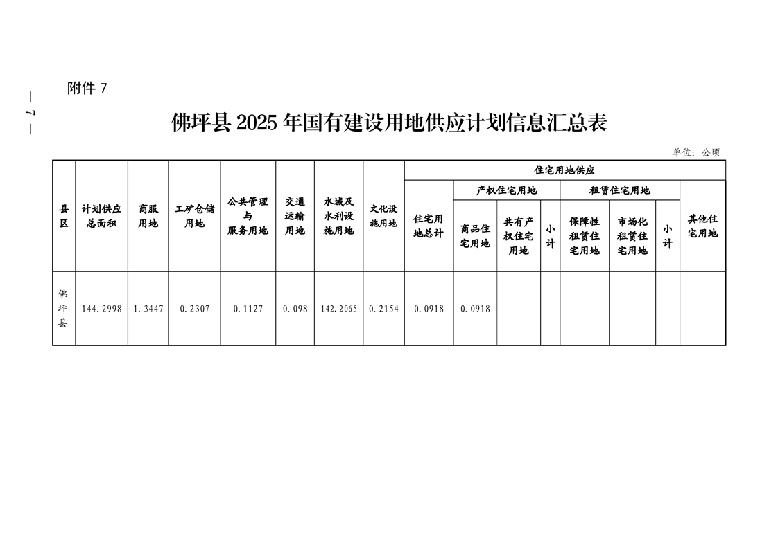 7.《佛坪县2025年国有建设用地供应计划信息汇总表》