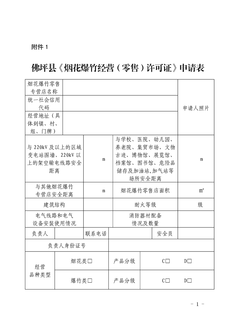 附件:1.佛坪县《烟花爆竹经营(零售)许可证》申请表