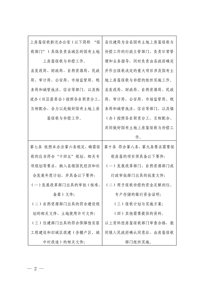 征收主体与职责:县政府为征收主体,县征收拆迁办统筹,县住建局为行政主管部门,其他部门按职责配合(如自然资源局负责土地权属认定)。