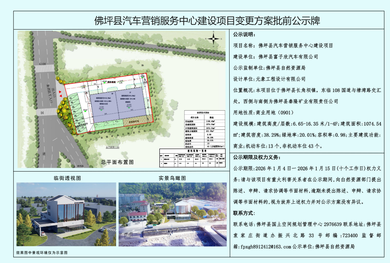 佛坪县汽车营销服务中心建设项目变更方案批前公示