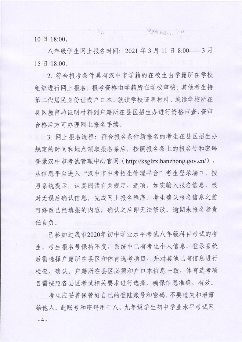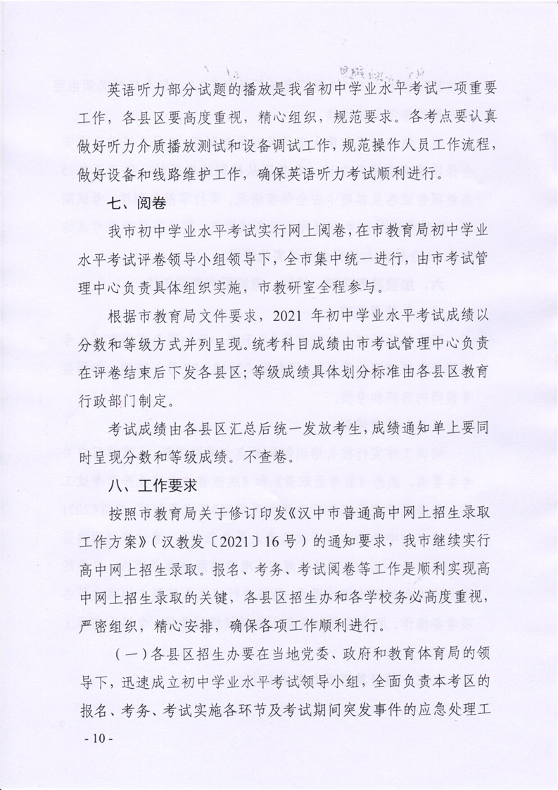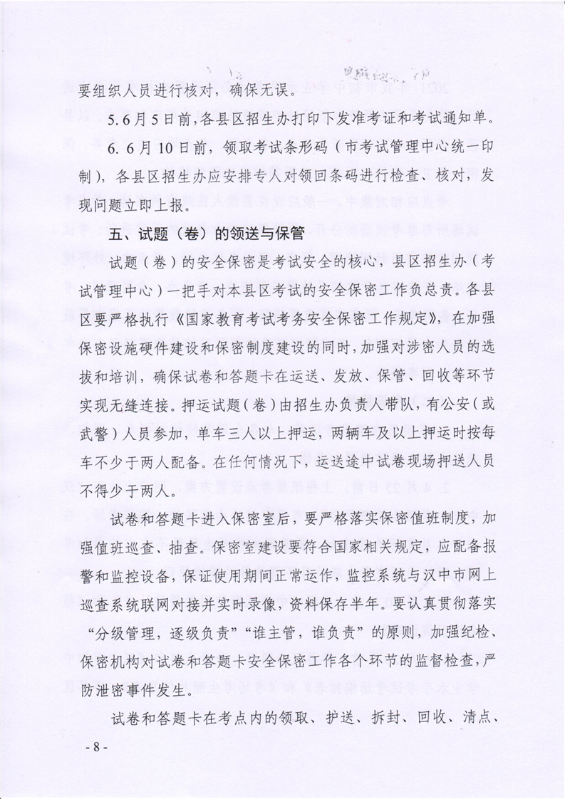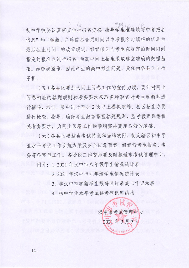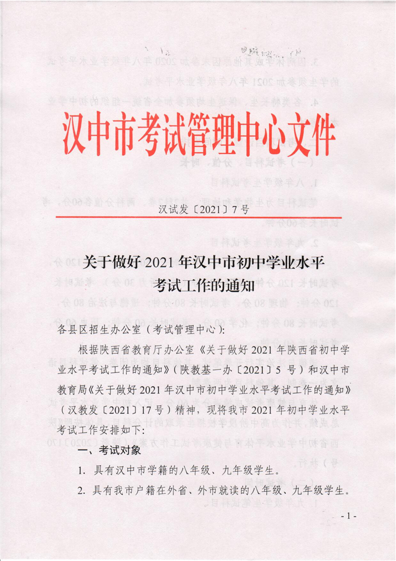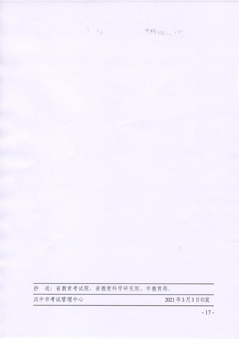 汉试发(2021)7号关于做好2021年汉中市初中学业水平考试工作的通知