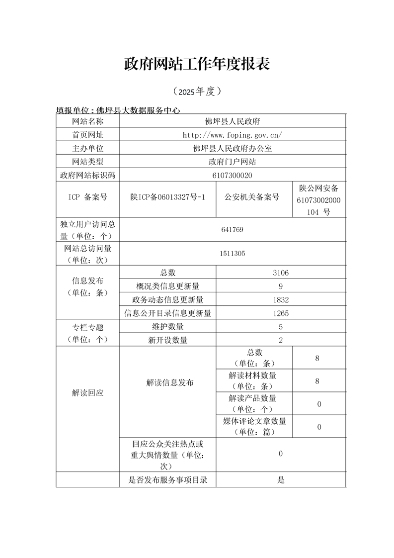 佛坪县人民政府网站年度工作报表(2025年)