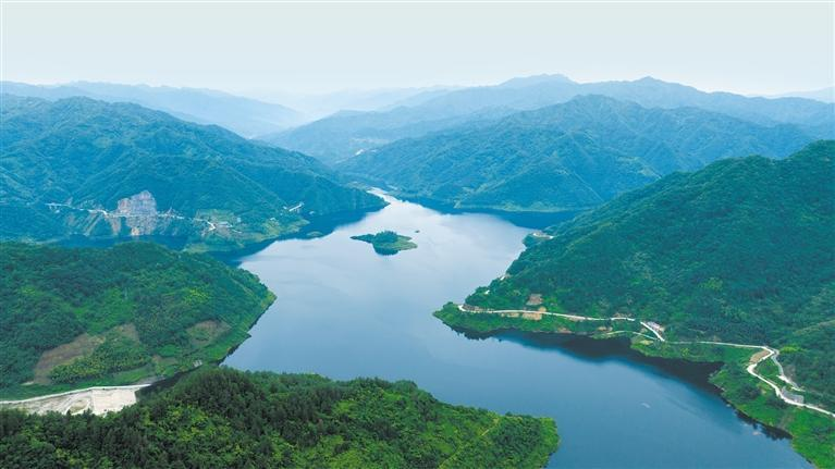 7月9日,阳光下的三河口水库碧波荡漾,自然环境优美。
