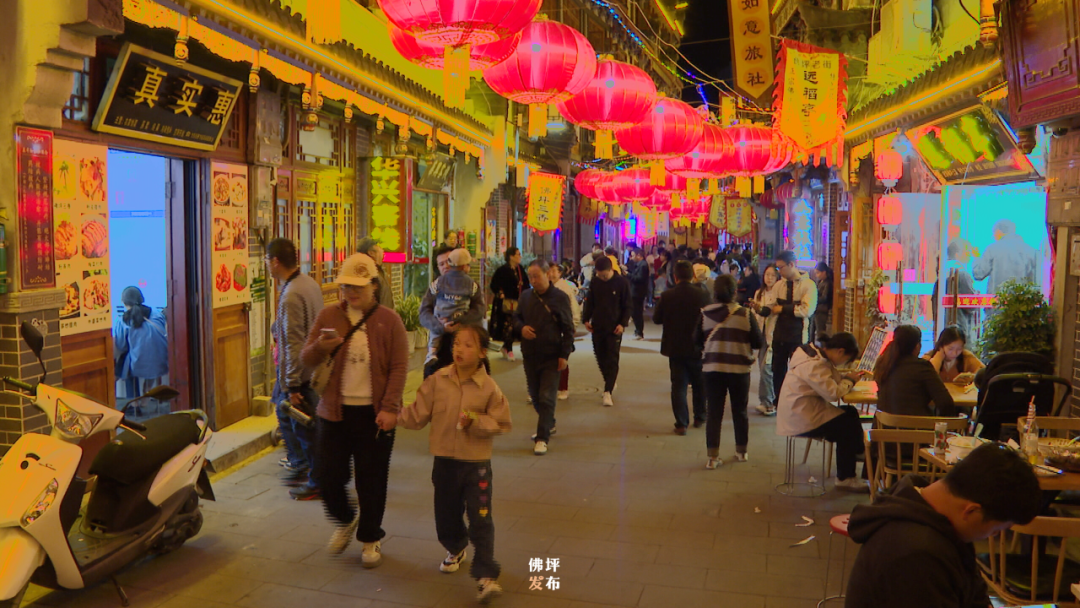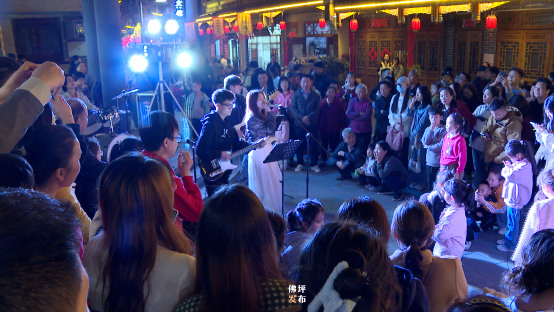 假日期间,佛坪老街开展了老街快闪、乐队演出等丰富多彩的文化活动,为广大游客持续提供丰富的游玩体验。夜幕下的老街热闹非凡,熙熙攘攘的人群挤满了街道。古香古色的徽派建筑、激情四溢的乐队表演,新与旧碰撞出一番别样的意境。台上,歌手们活力四射,与现场绚丽多彩的灯光交相辉映;台下,孩子们欢呼跳跃、年轻人随拍摇摆、老人们侧耳倾听,大家拿起手机记录着一个个精彩瞬间,歌声吸引了行人驻足欣赏,气氛热烈欢乐。