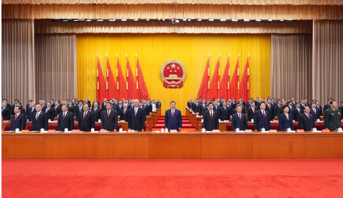上午10时30分许,在欢快的乐曲声中,习近平等领导同志走上主席台,全场响起长时间的热烈掌声。